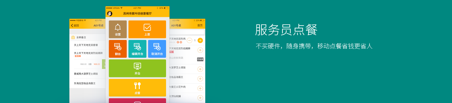 支持安卓手机,服务员个人手机或餐厅统一配备,价格低廉;